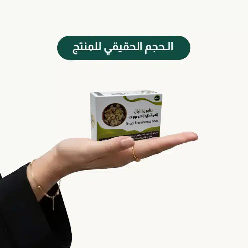 استعيدي نضارة بشرتك مع صابون اللبان العماني الطبيعي. سر الجمال السلطاني الذي يعمل على شد البشرة، توحيد لونها، وتجديد خلاياها بفضل خلاصة اللبان الحوجري النقي.
